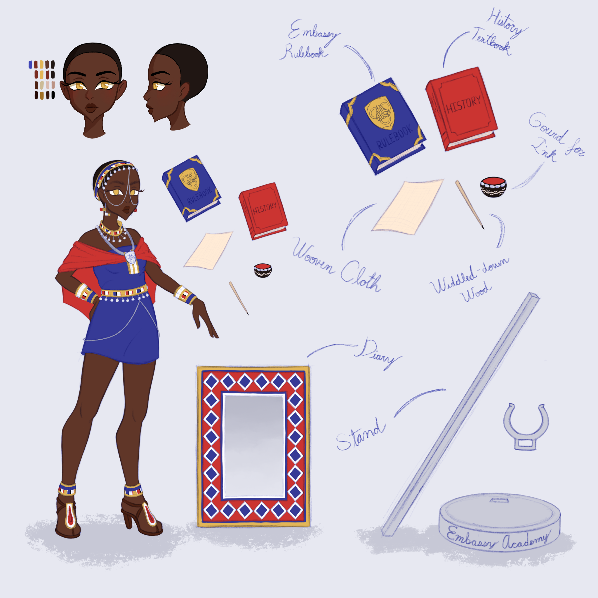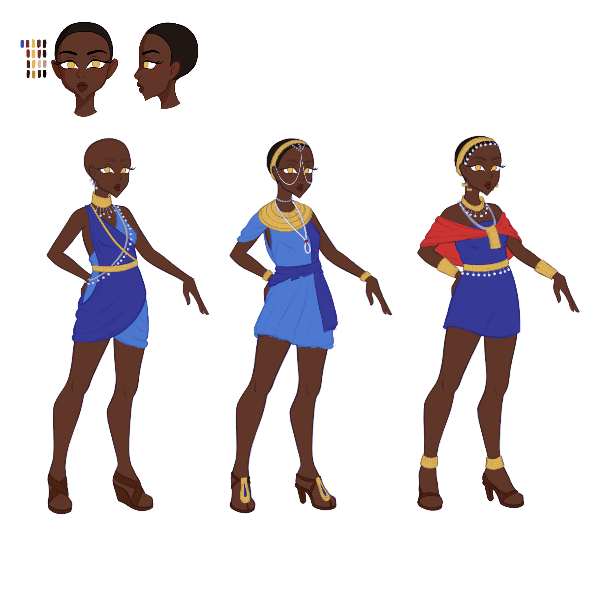 Nalutuesha is the princess of Kenya and is inspired by the fashion of the Maasai Tribe in the 1900s.